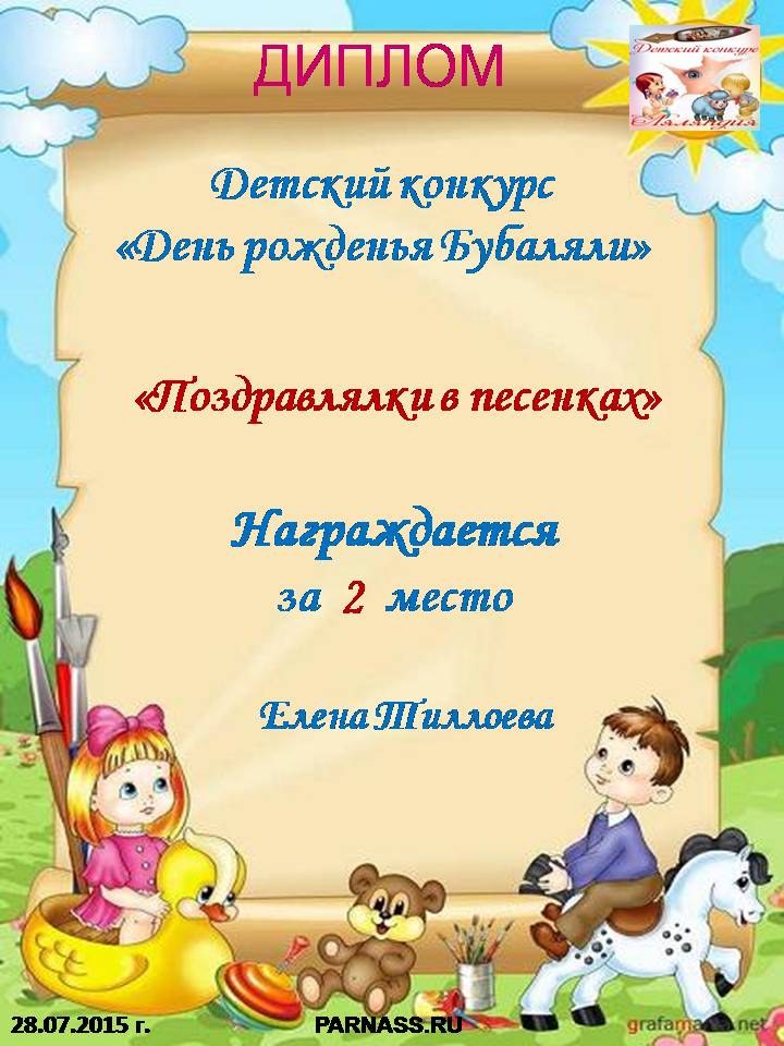 За изготовление и вручение дипломов по итогам конкурса «Мой ласковый и нежный друг»