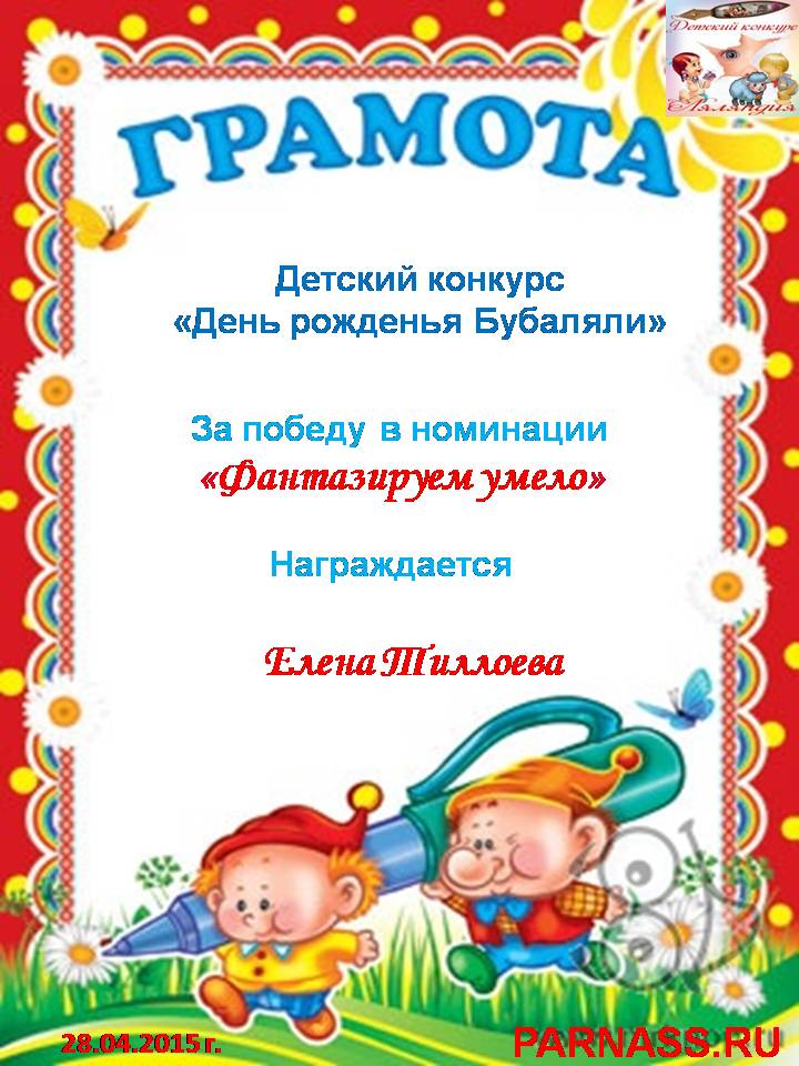 Похвальная грамота за 4 место и активное участие в конкурсе лимериков № 70+ (29.06.2015 г.)