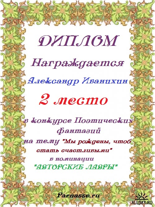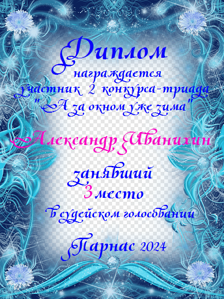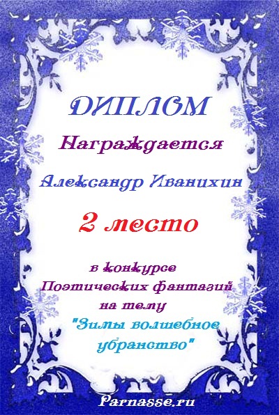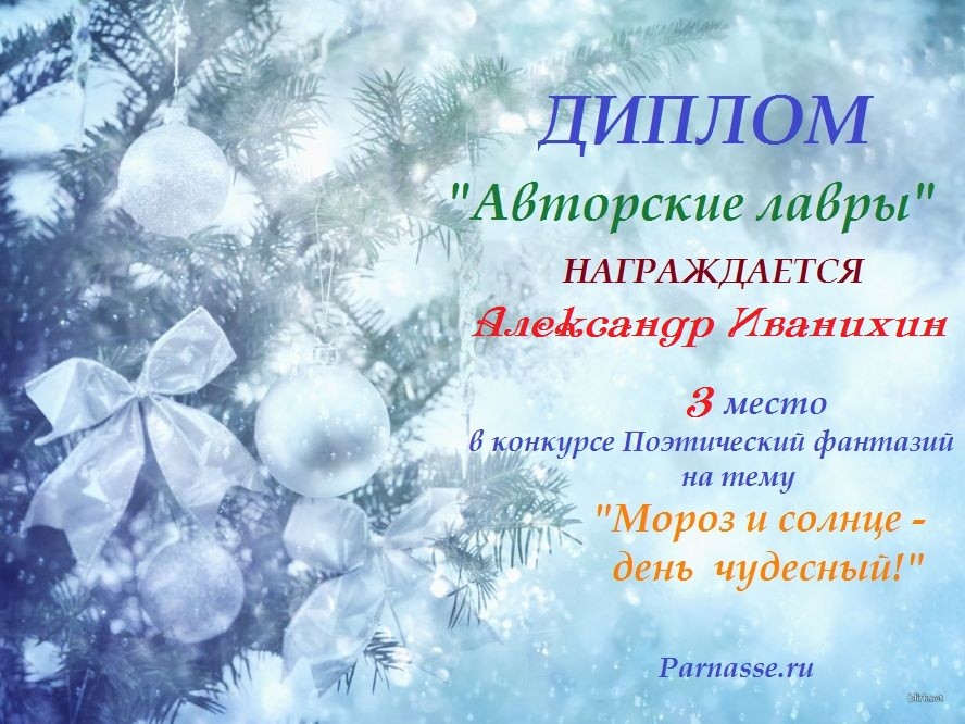 за 3 место в конкурсе Поэтических фантазий "Зимы волшебное убранство в номинации "Авторские лавры"ПОЗДРАВЛЯЕМ!