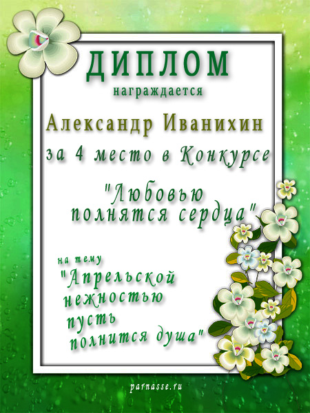 2 место в конкурсе Любовью полнятся сердца на тему "Философия души". Поздравляем!