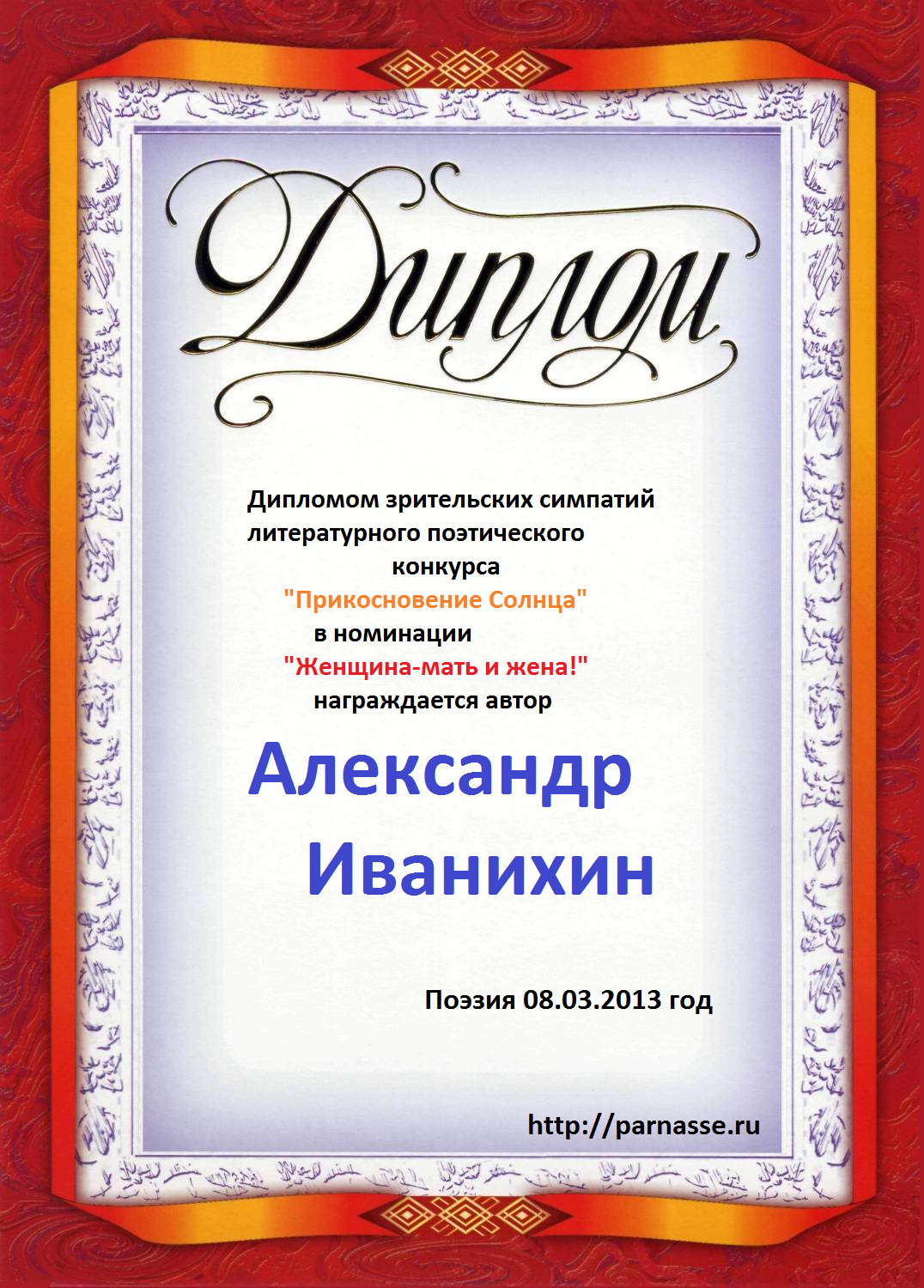 Третье место по итогам конкурса "Твой образ хранит моё сердце"