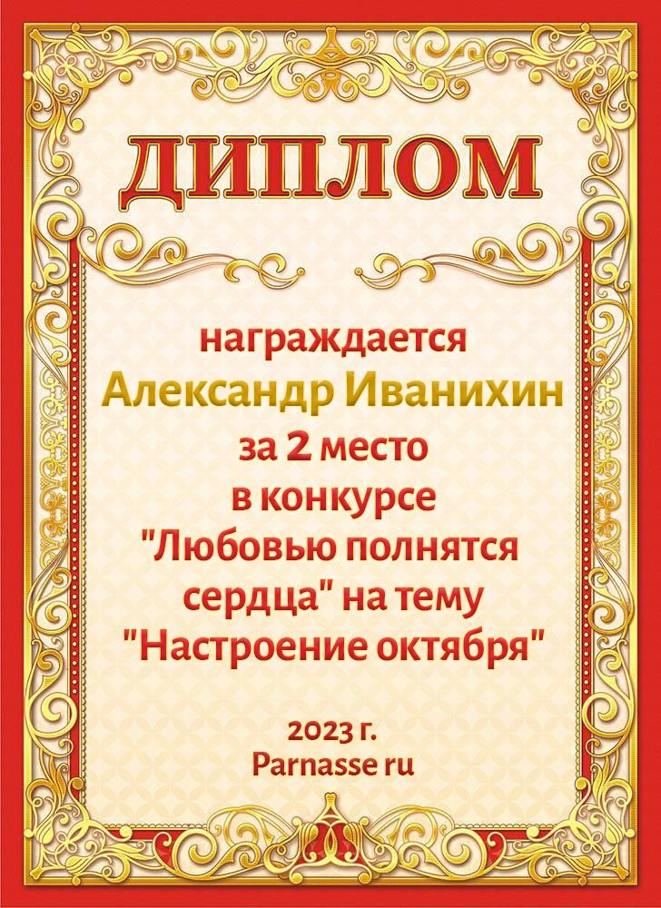 2 место в конкурсе "Любовью полнятся сердца" на тему "Настроение октября". Поздравляем!