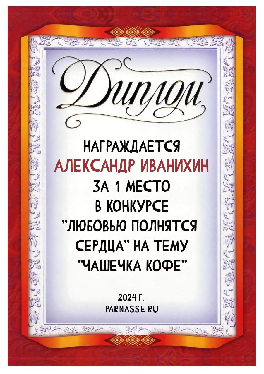 1 место в конкурсе "Любовью полнятся сердца" на тему "Чашечка кофе". Поздравляем!