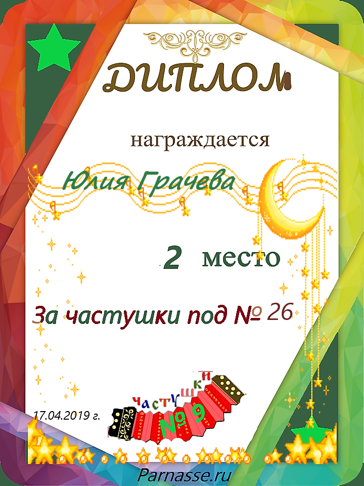 второе место в конкурсе "ЧАСТУШКИ" № 14 за работу под № 25