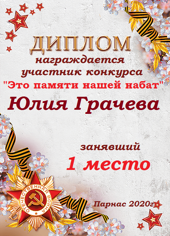За победу в конкурсе "Это памяти нашей набат". Поздравляем с Днём Великой Победы!