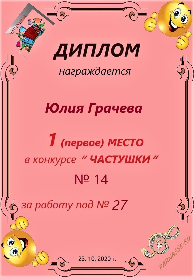 1 место в конкурсе "ЧАСТУШКИ" № 14 за работу под № 27