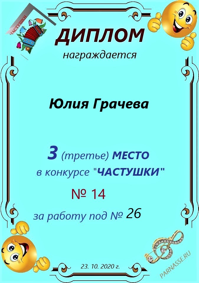 третье место в конкурсе "ЧАСТУШКИ" № 14 за работу под № 26