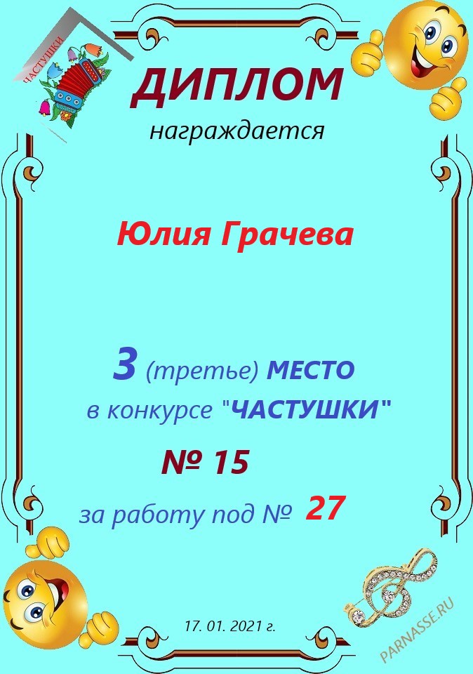 3 место в конкурсе "ЧАСТУШКИ" 15.., за работу под № 27