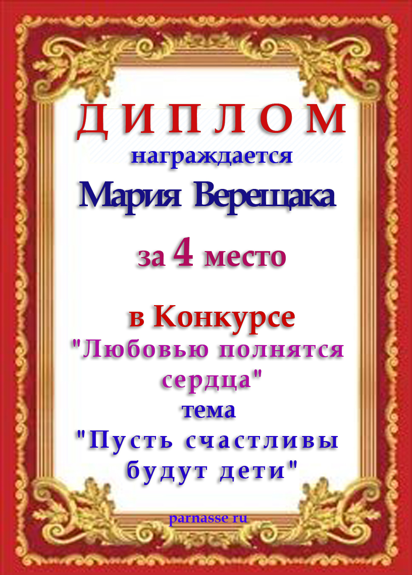 Победителю музыкально-литературного конкурса "Ах, Мама, Мамочка, родная!" Номинация "Стихи о Мамочке". Поздравляем! Счастья Вам, прекрасного настроения, вдохновения, успехов и всего замечательного. Спасибо за участие в конкурсе. С Уважением, Администрация.