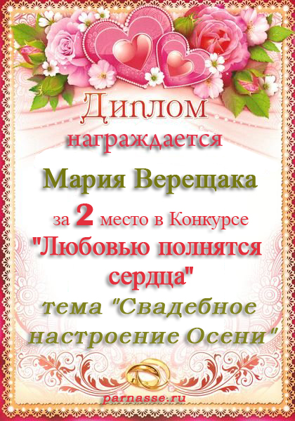 Второе место по итогам конкурса "Когда приходит первая любовь"