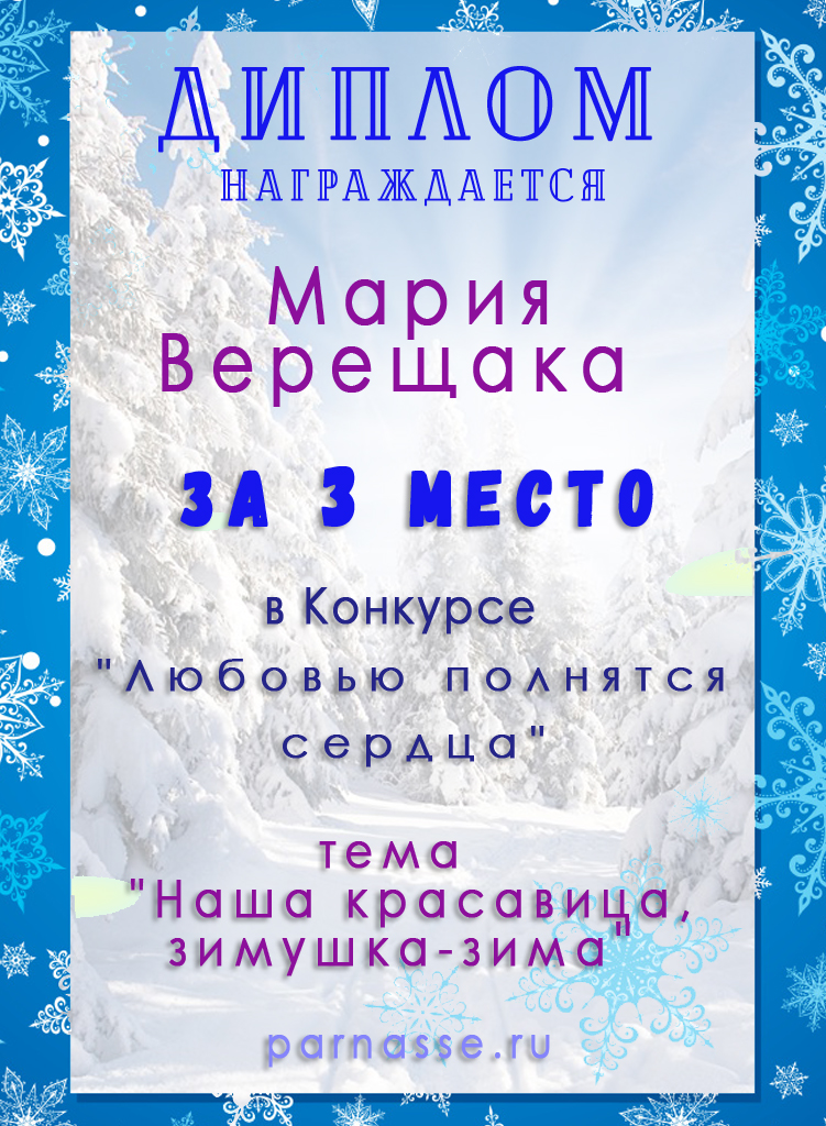 Благодарим Вас за участие в зимнем конкурсе в номинации "Стихи о Зиме". Произведение "Зима"