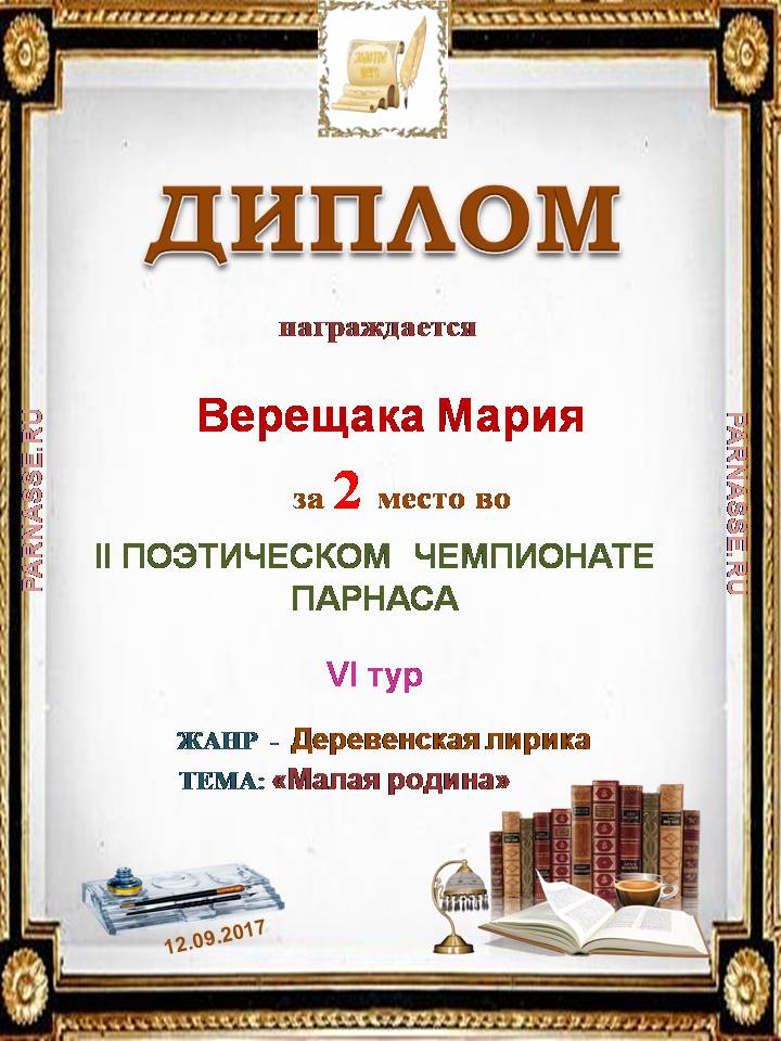 За показательное творчество во II Чемпионате по поэзии