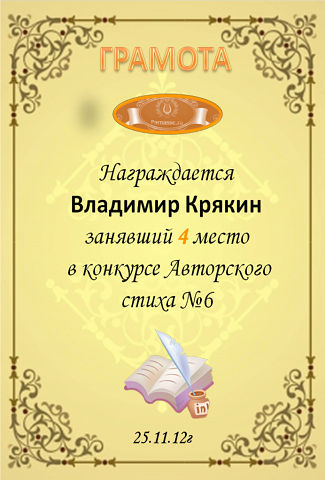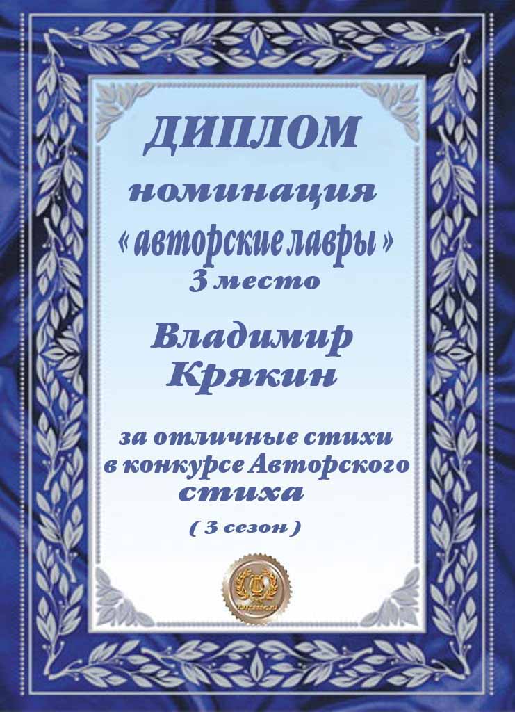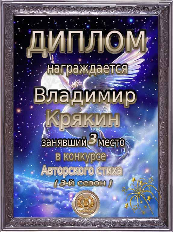 За 3 место в конкурсе Авторского стиха (3-й сезон)