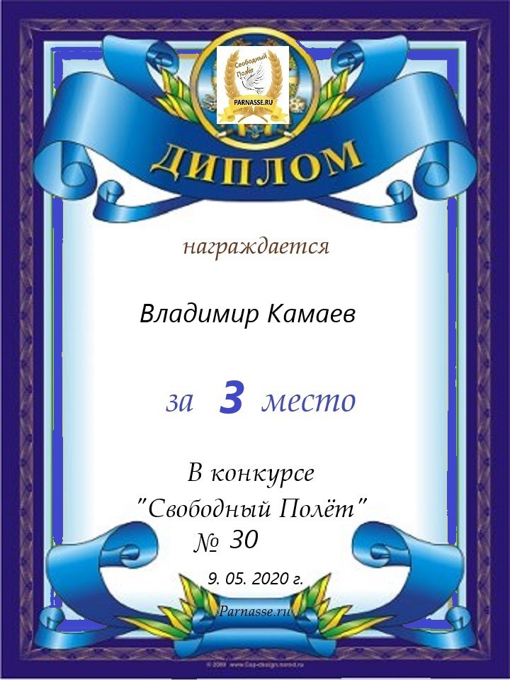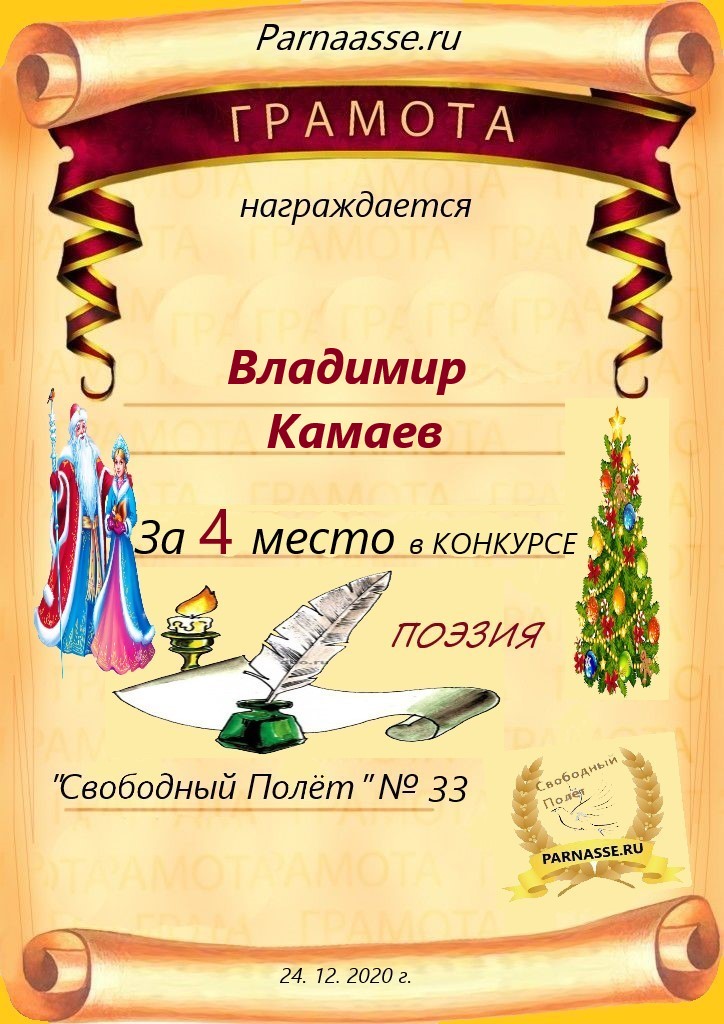за 4 место в конкурсе "Свободный Полёт" № 33. ПОЭЗИЯ