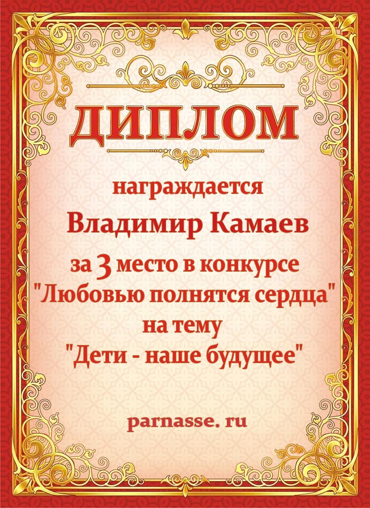 За 3 место в конкурсе "Любовью полнятся сердца" на тему "Дети - наше будущее"
