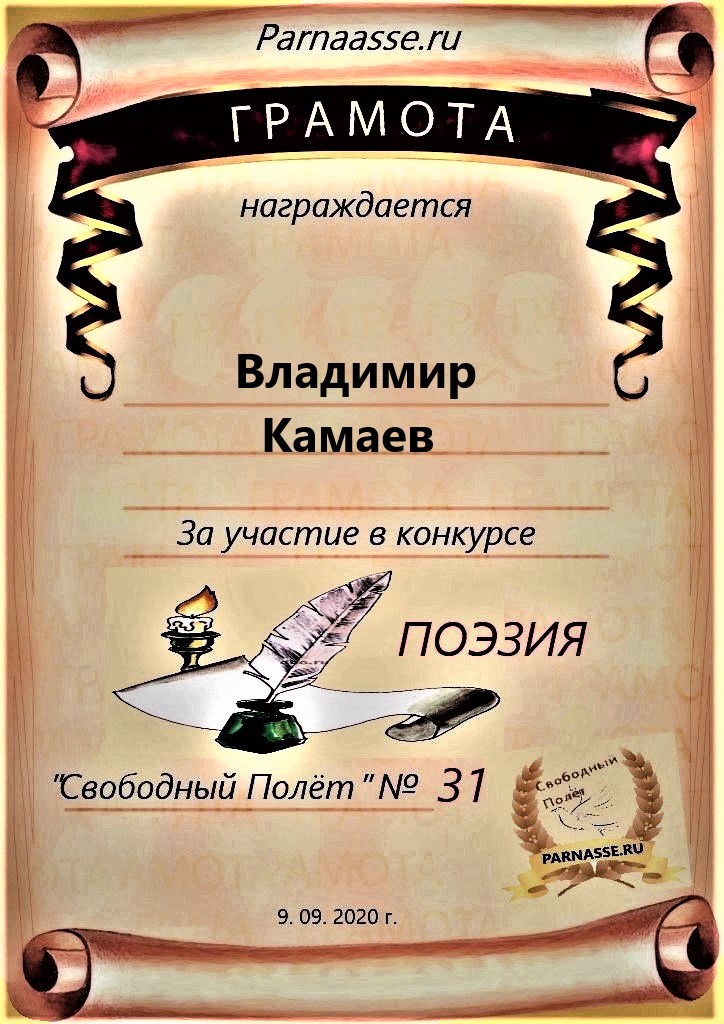 за участие в конкурсе"Свободный Полёт" № 31. ПОЭЗИЯ