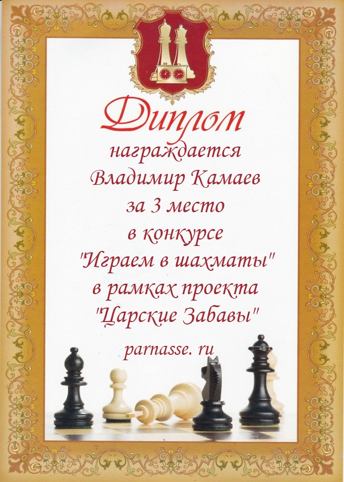 3 место в конкурсе "Играем в шахматы" в рамках проекта "Царские Забавы"