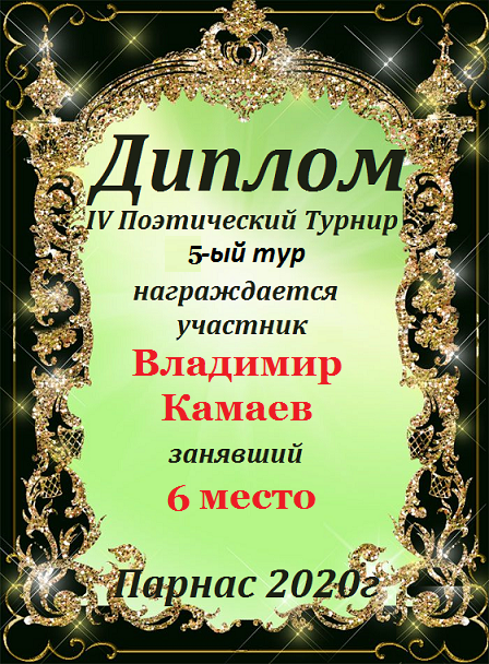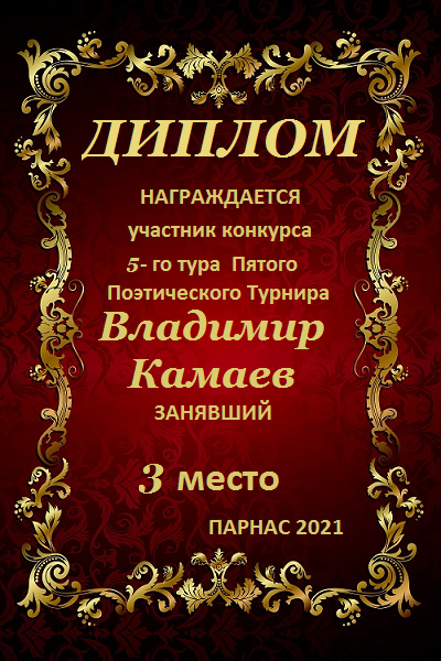 Третье место по итогам 5-го тура Пятого Поэтического Турнира