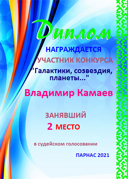 Второе место в судейском голосовании по итогам конкурса "Галактики,соэвездия,планеты..."