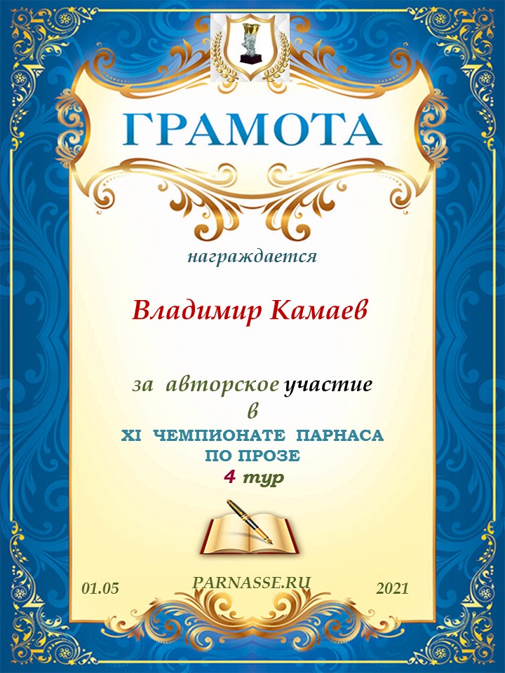 Медаль автора - участника 4 тура XI Чемпионата Парнаса по Прозе