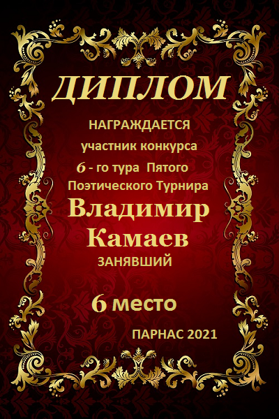Шестое место в судейском голосовании по итогам 6-го тура Пятого ПоэтическогоТурнира