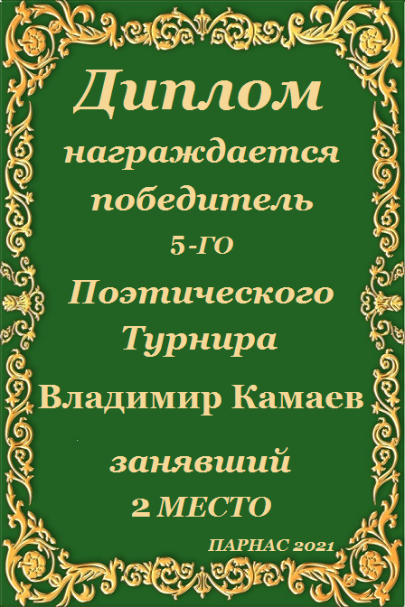 Второе место в судейском голосовании по итогам конкурса " Пятый Поэтический Турнир"