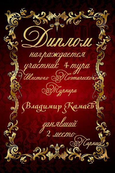 ![]() Медаль за 6-е место «Четвёртого Поэтического Турнира»