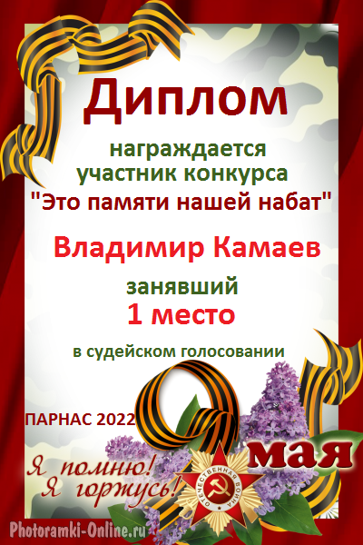 Первое место в судейском голосовании по итогам конкурса "Это памяти нашей набат"