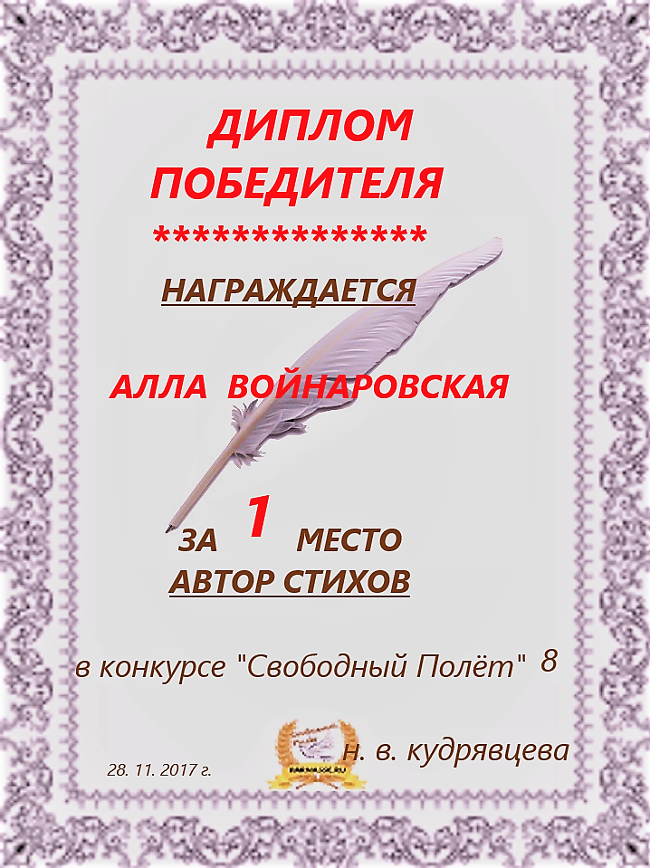 Третье место по итогам конкурса «Твой Стих, как Божий Дух, носился над толпой», народное голосование. Поздравляем с прекрасной победой!