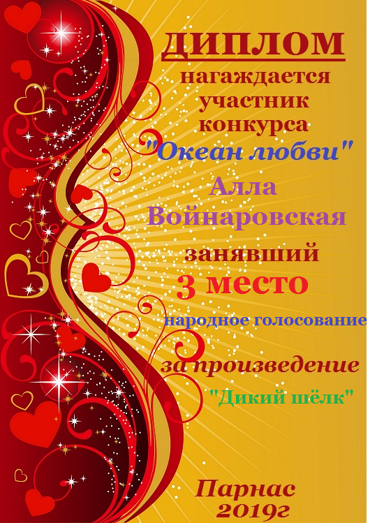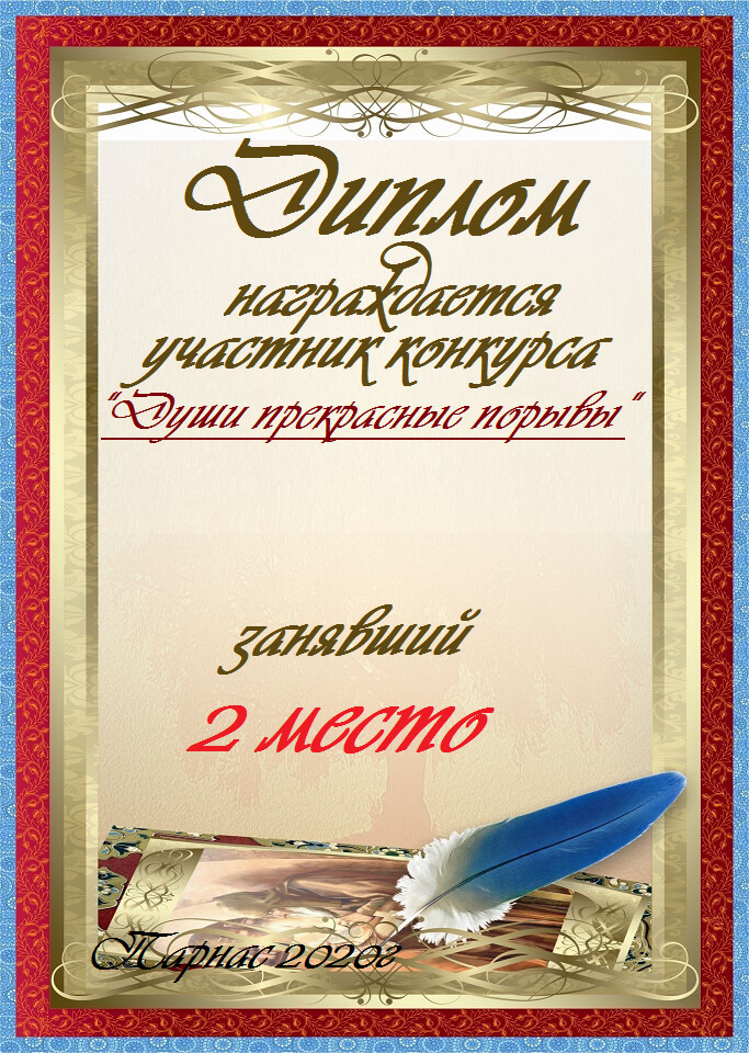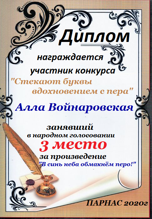 Третье место по итогам конкурса " Вдохновение – росчерк пера", народное голосование. Поздравляем с прекрасной победой!