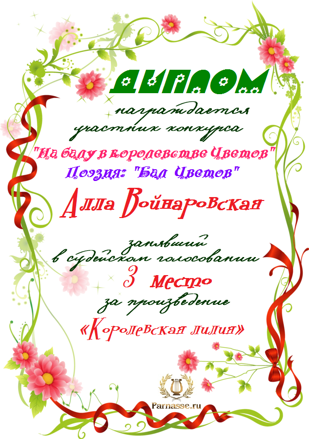 Третье место в конкурсе " Бал Цветов", судейское голосование. Поздравляем с прекрасной победой!