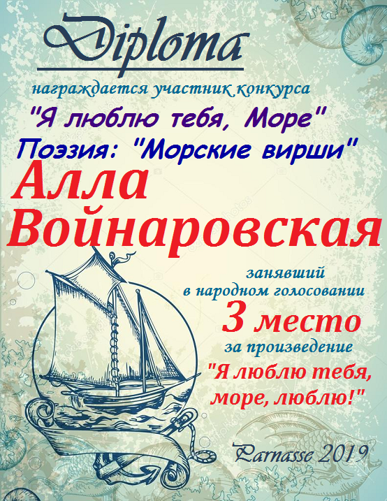 Третье место в конкурсе " Морские вирши", народное голосование. Поздравляем с прекрасной победой!