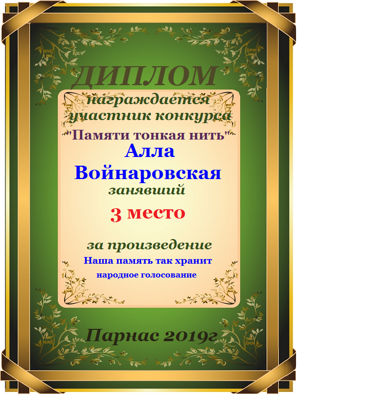 Третье место по итогам конкурса " Как много в памяти хранится", народное голосование. Поздравляем с прекрасной победой!