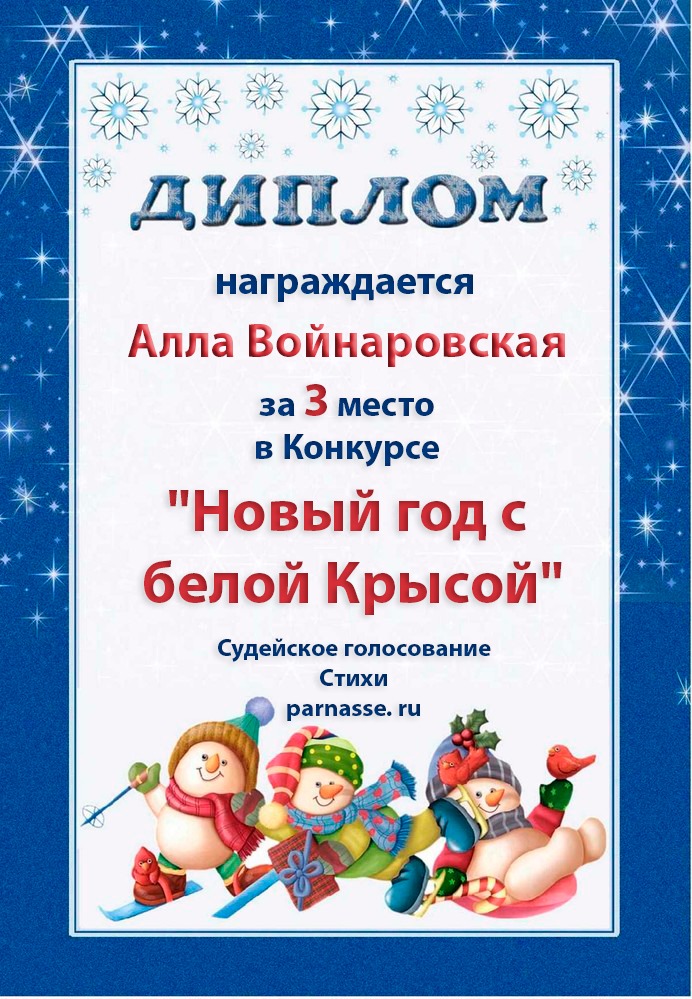 За 3 место в Конкурсе "Новый год с белой Крысой". Судейское голосование. Стихи. Поздравляем!