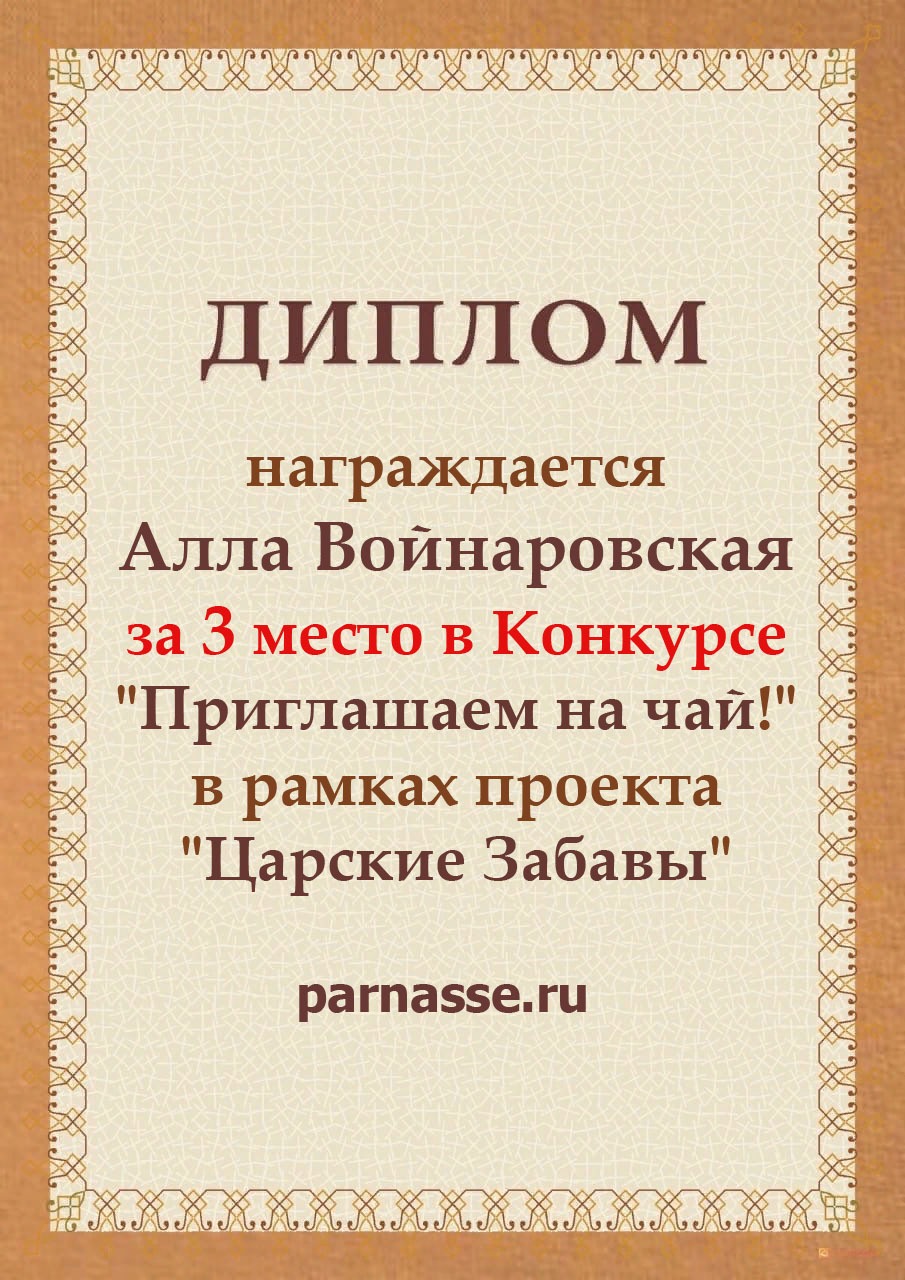 За 3 место в конкурсе "Приглашаем на чай!" в рамках проекта "Царские Забавы"