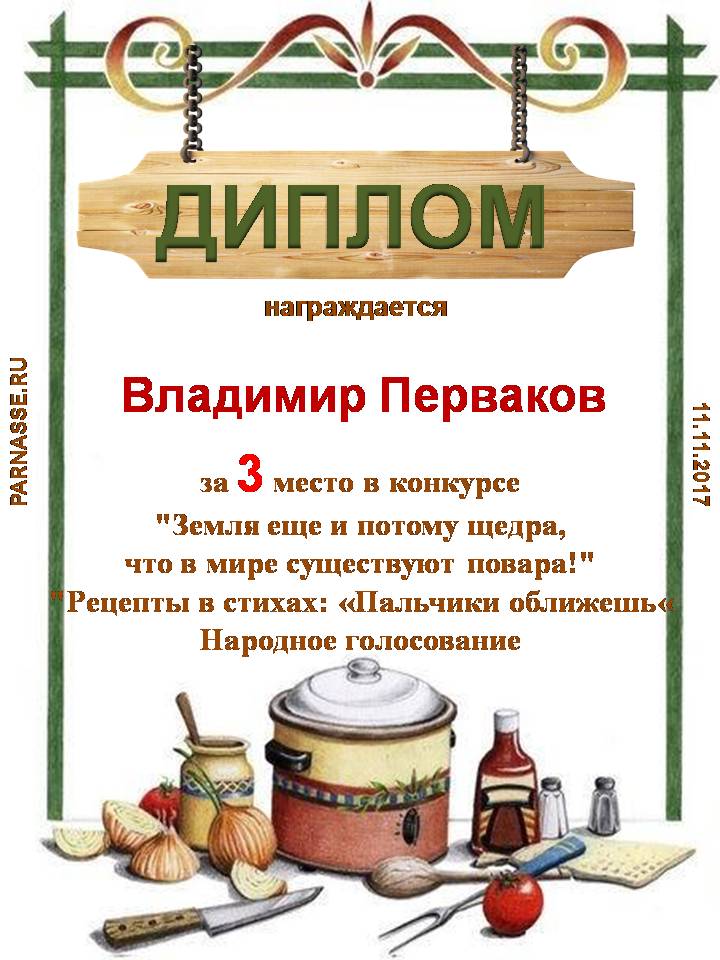 Поздравляем с 3 местом! Номинация: Поздравления в стихах: Пальчики оближешь! - народное голосование.