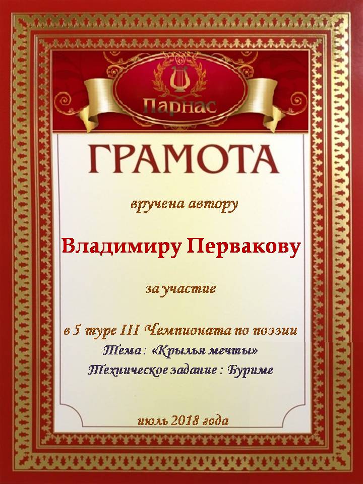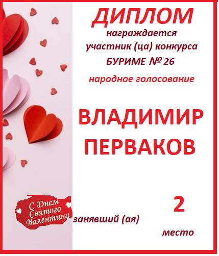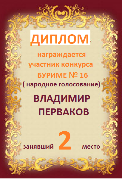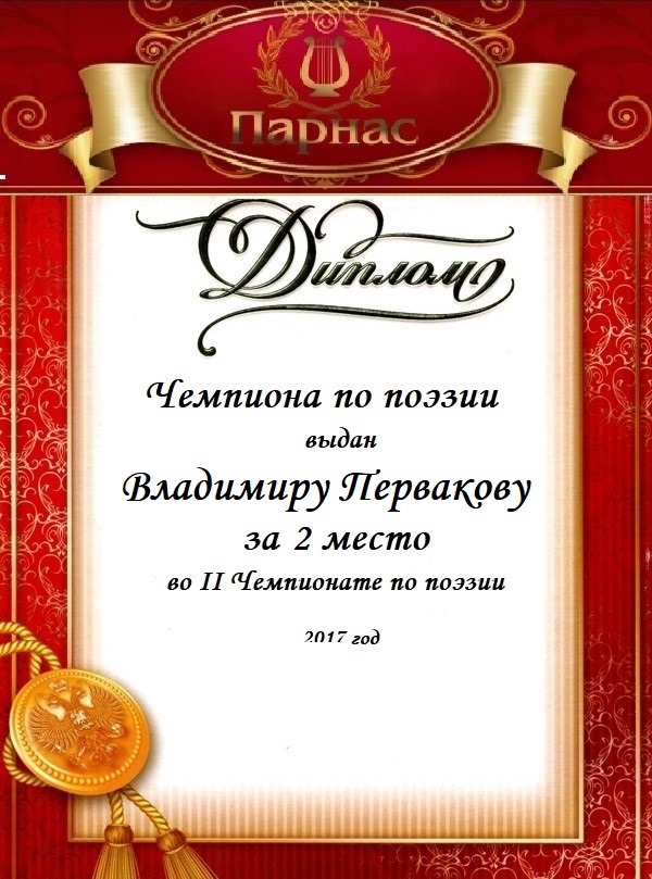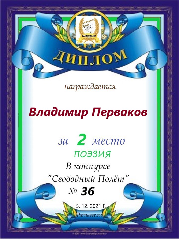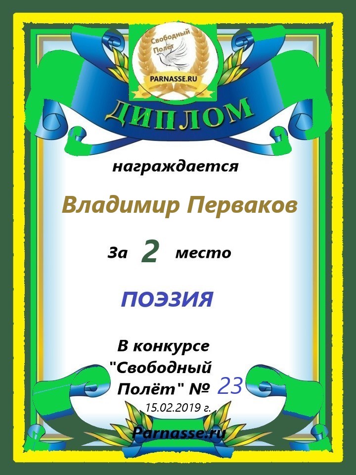 за 2 место в конкурсе "Свободный Полёт" № 36 ПОЭЗИЯ