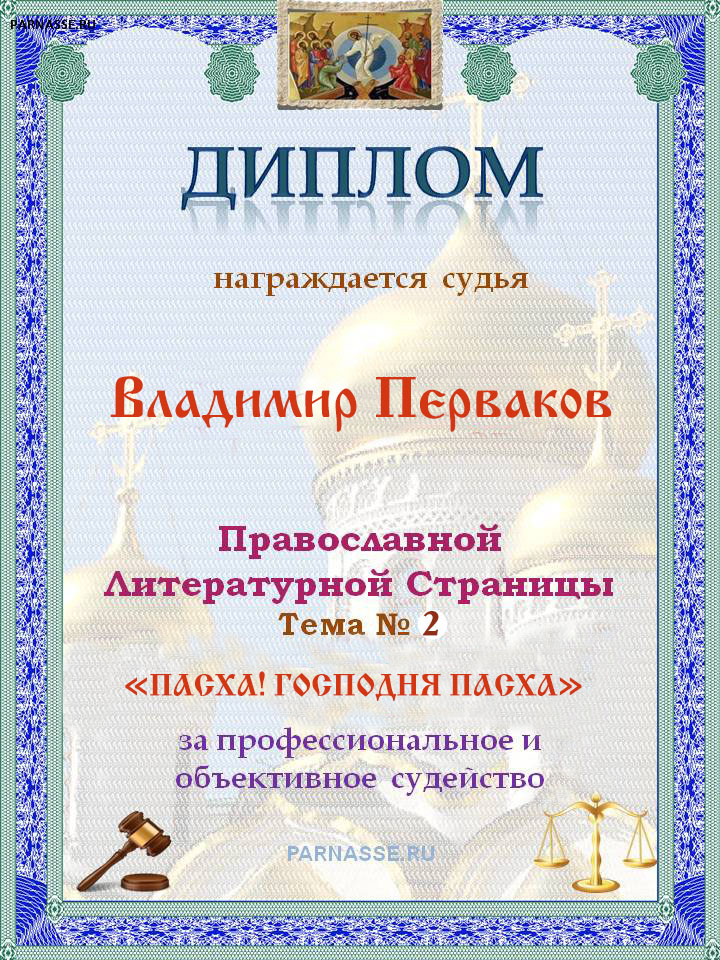 Диплом за объективное и профессиональное судейство на Православной ЛитСтранице.
