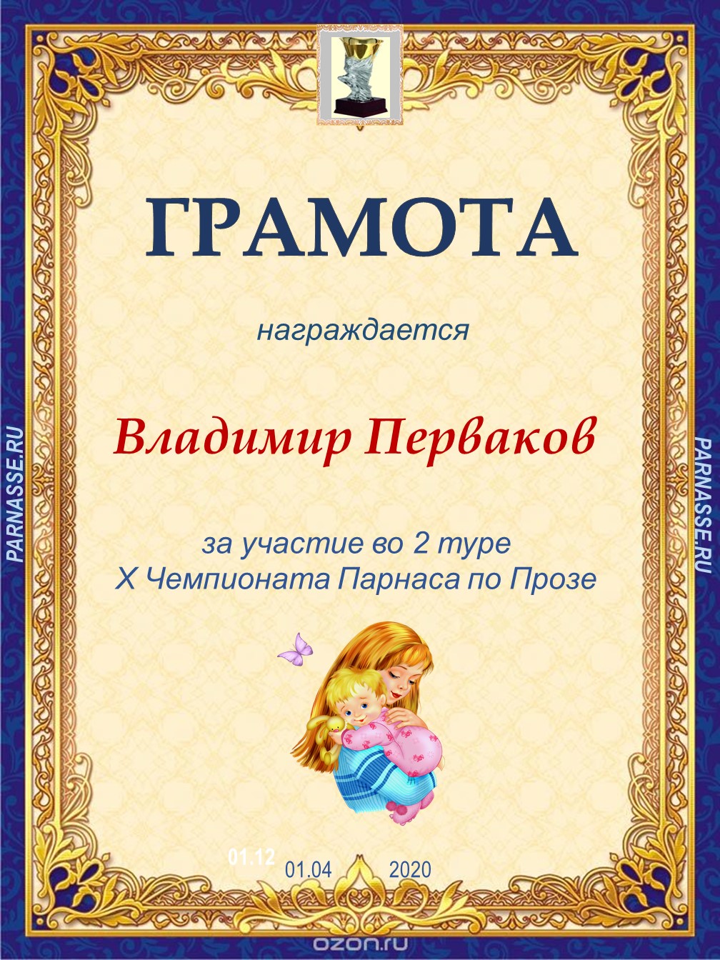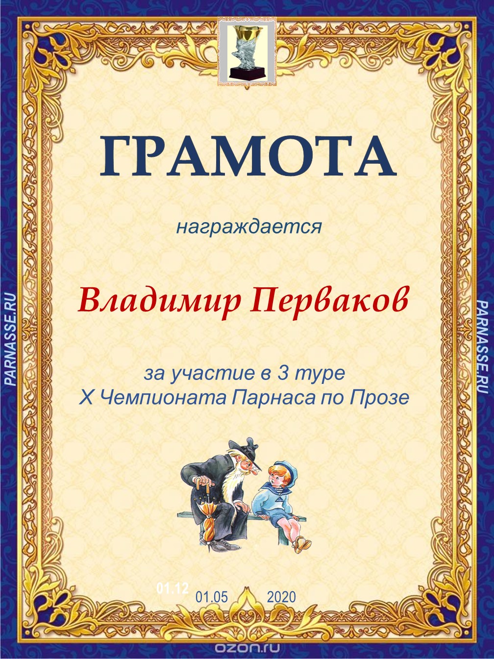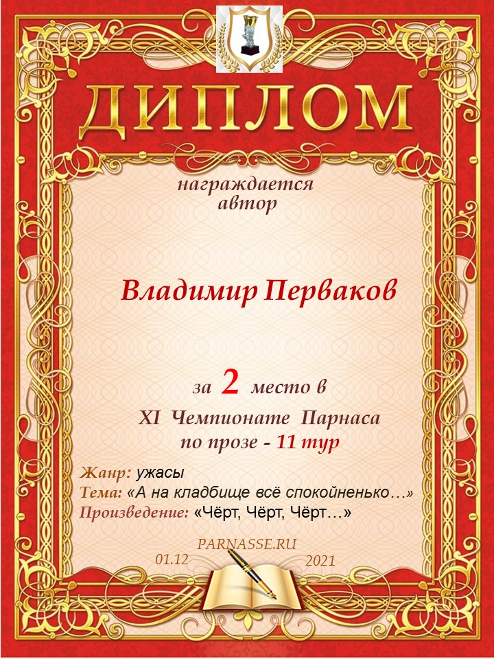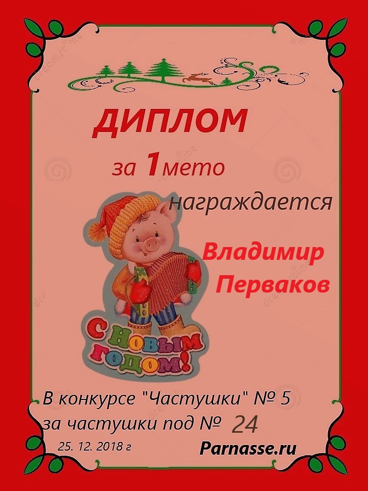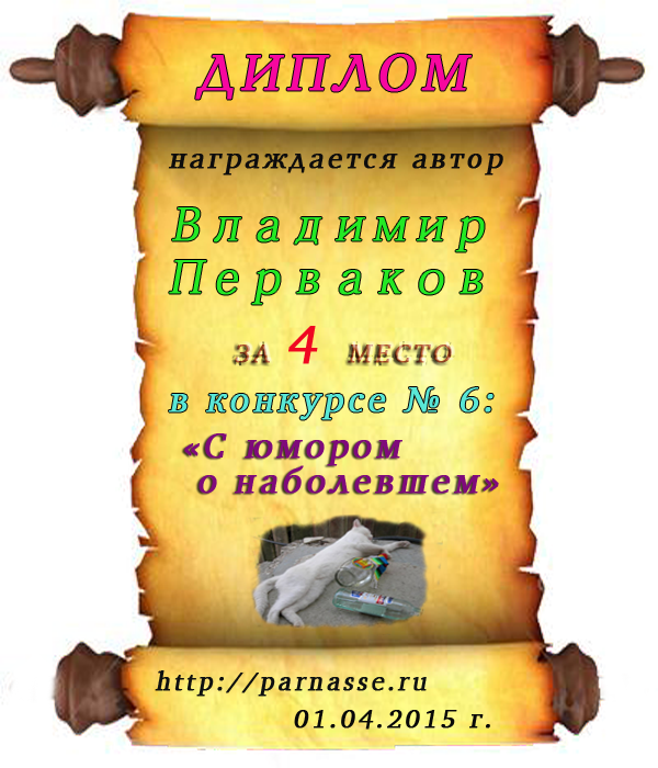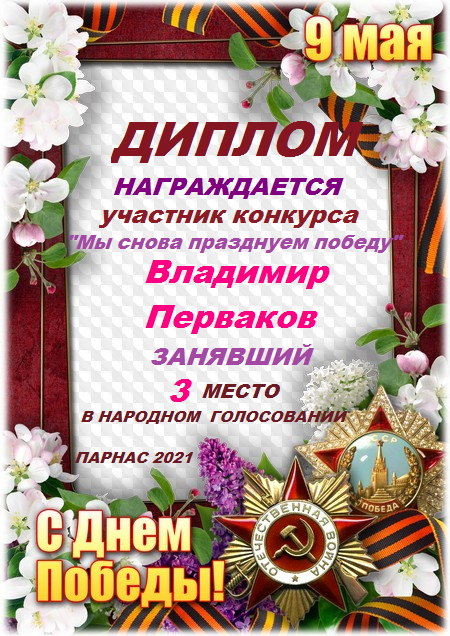 Диплом за 1 место в праздничном конкурсе "Поздравим Парнас с трёхлетием вместе!"