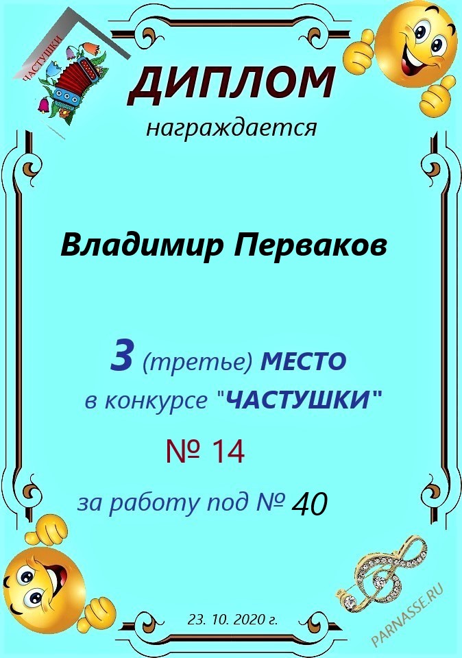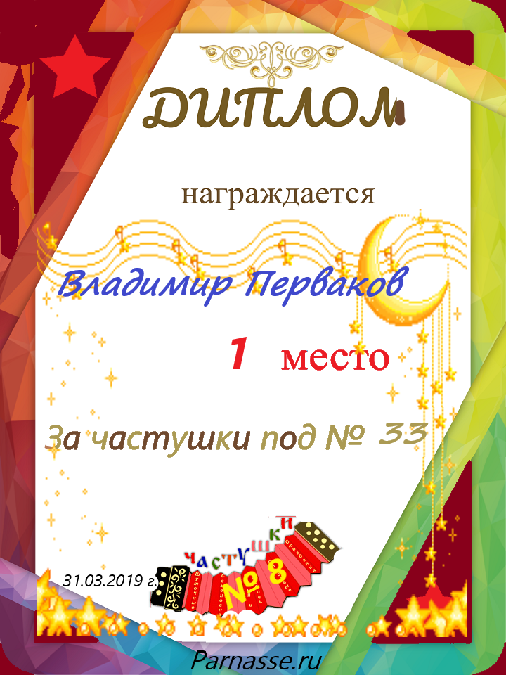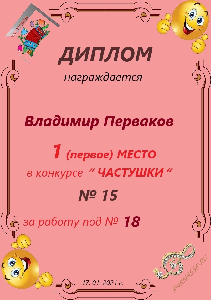 3 место в конкурсе"ЧАСТУШКИ" № 21...за работу под № 28
