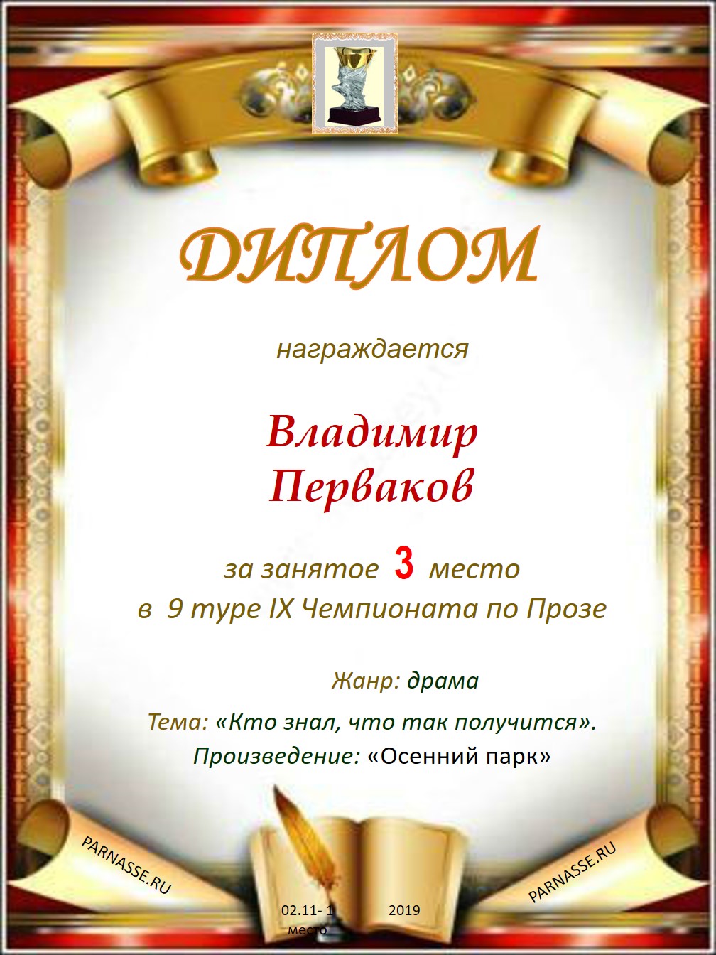 Поздравляю с занятым 3 местом в IX Чемпионате Парнаса по Прозе - 9 тур!
