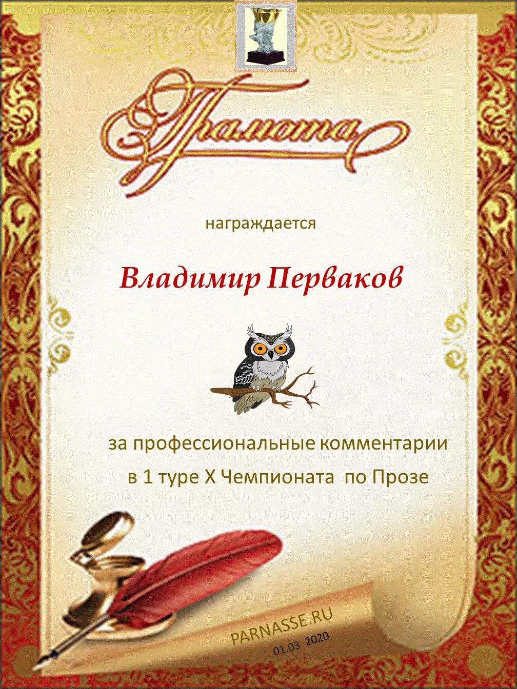 Большое спасибо за профессиональные и объективные комментарии в 10 туре X Чемпионата Парнаса по Прозе!