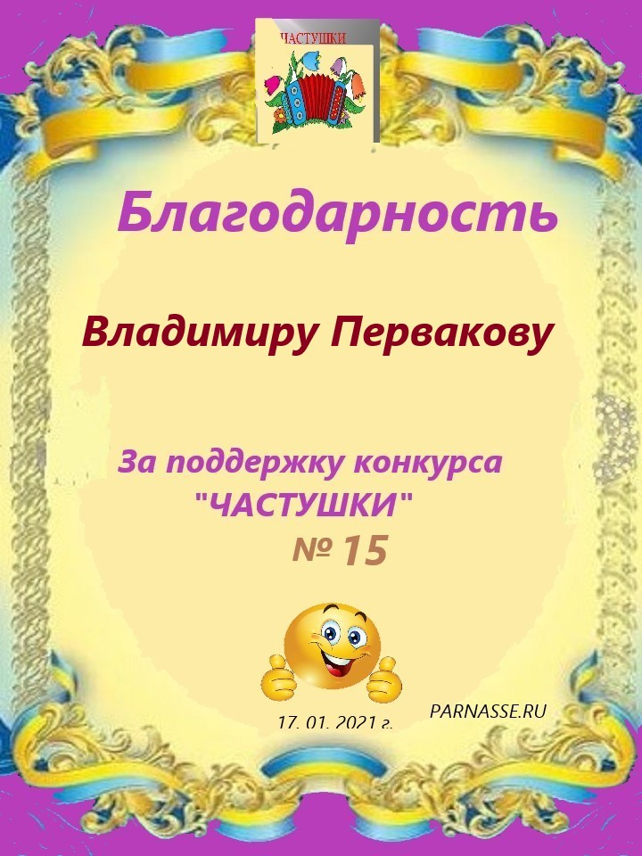 За поддержку конкурса"ЧАСТУШКИ" № 21