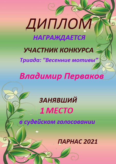 Первое место в судейском голосовании по итогам конкурса Триада: «Весенние мотивы»