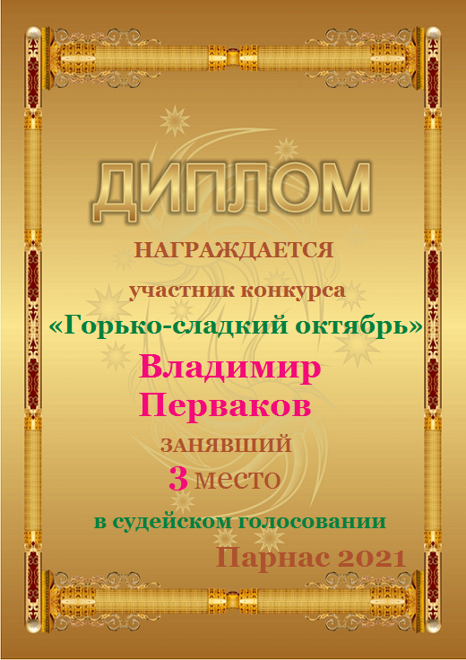 Третье место в судейском голосовании по итогам конкурса «Горько-сладкий октябрь»