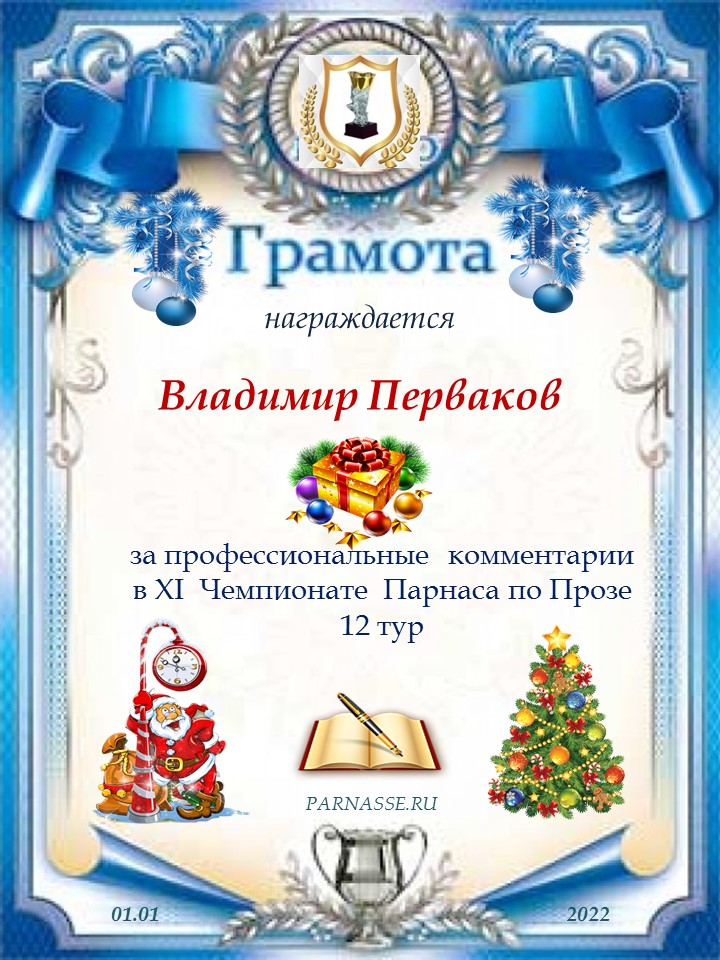 Спасибо за профессиональные комментарии в 12 туре XIII Чемпионата Парнаса по прозе!