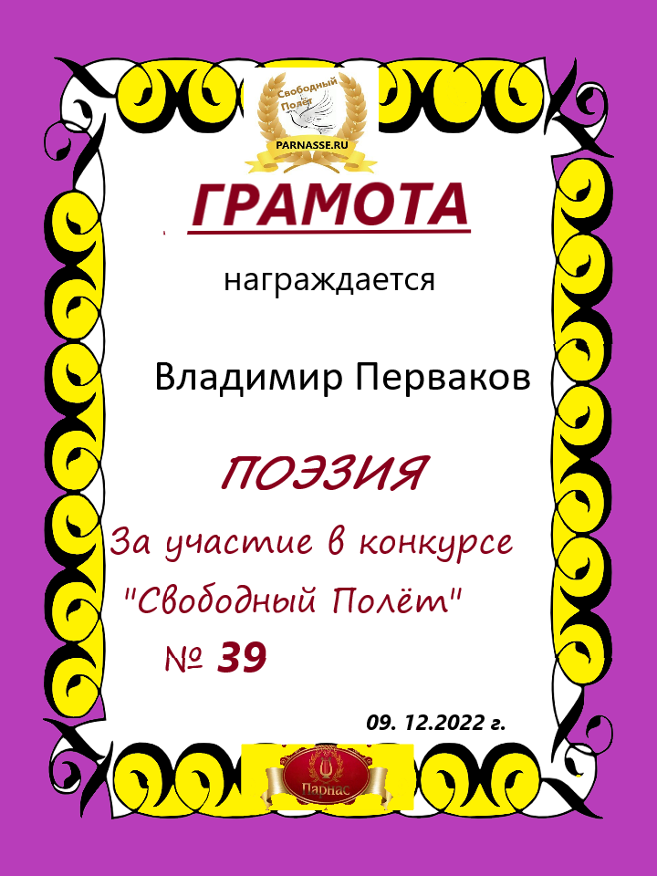 за 3 место в конкурсе "Свободный Полёт" № 37 ПОЭЗИЯ