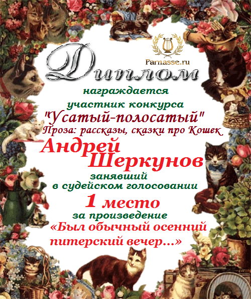 Первое место в конкурсе " Усатый-полосатый т", судейское голосование. Поздравляем с прекрасной победой!