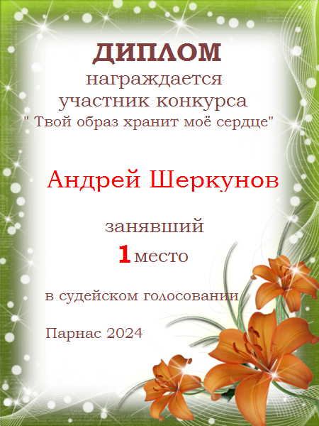 Первое место по итогам конкурса "Твой образ хранит моё сердце"