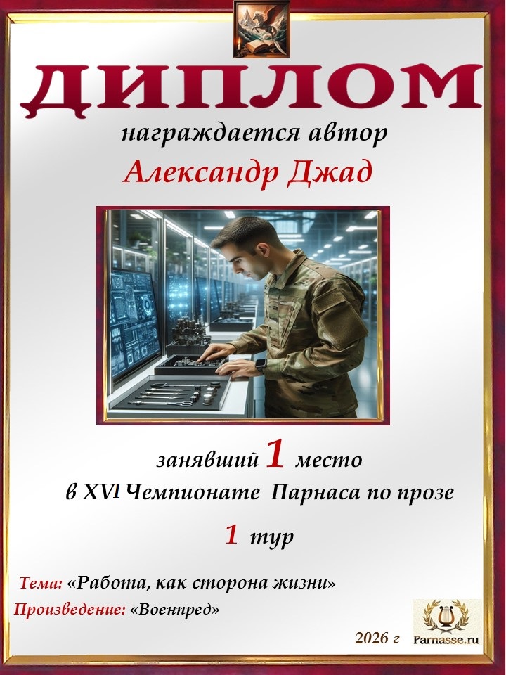 Вручается за 1 место в 1 туре XVI Чемпионата Парнаса по прозе